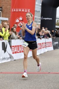 Trotz der schwierigen Bedingungen gelang Stephanie Waglöhner von der SG Nußloch ein super Rennen auf der Halbmarathondistanz. Zwar konnte sie die hohe Anfangsgeschwindigkeit der führenden Läuferinnen nicht mitgehen, nutzte den Schwung des Starts jedoch optimal, um schnell ihren eigenen, kontrollierten Rhythmus zu finden. So pendelte sich Steffi bei einer Pace von 4:06Minuten pro Kilometer ein. Diese Konstanz zahlte sich aus: Lange auf dem 5. Gesamtrang liegend, konnte sie sich, durch die gute Renneinteilung auf der zweiten Hälfte, noch um einen Platz nach vorne arbeiten.